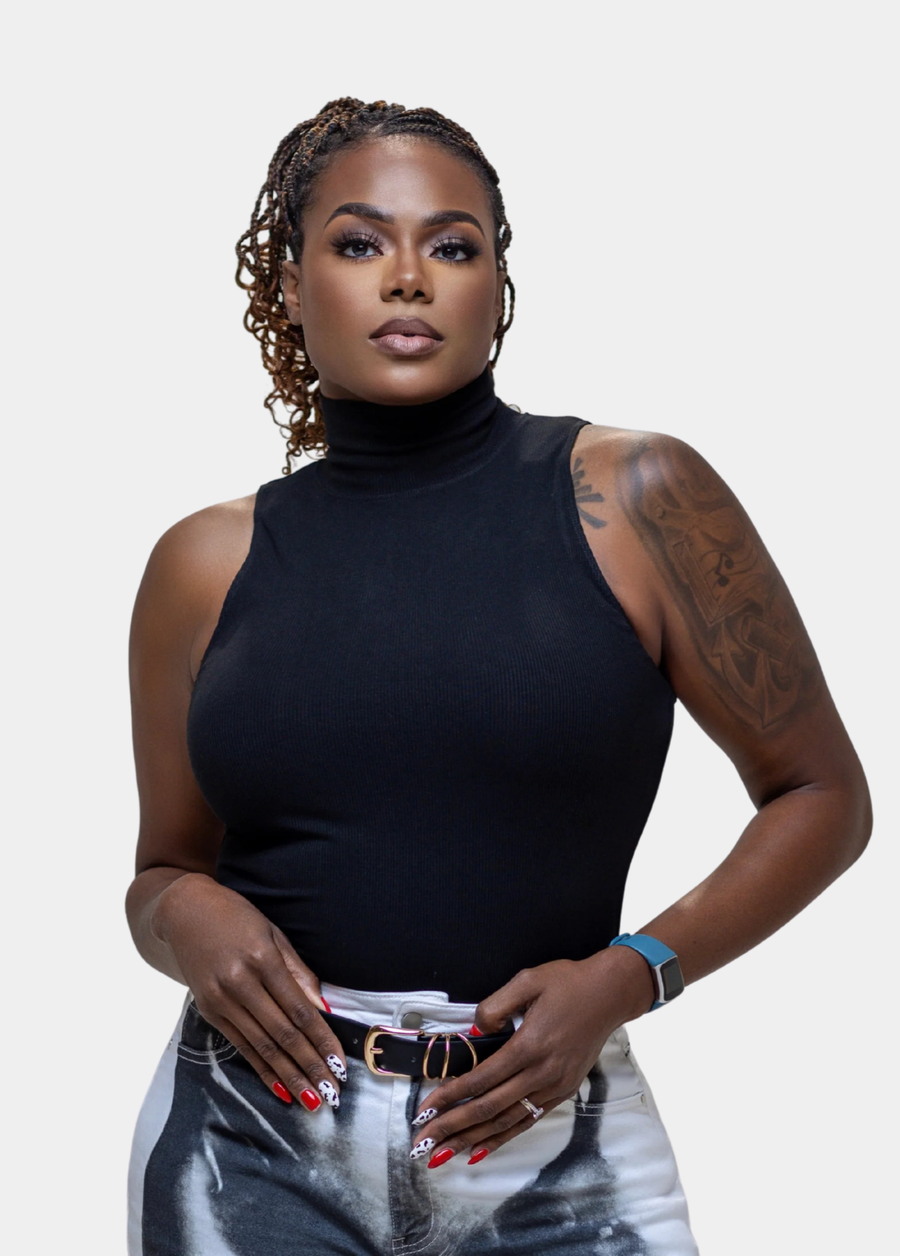 Long Torso Sleeveless Bodysuit - Black