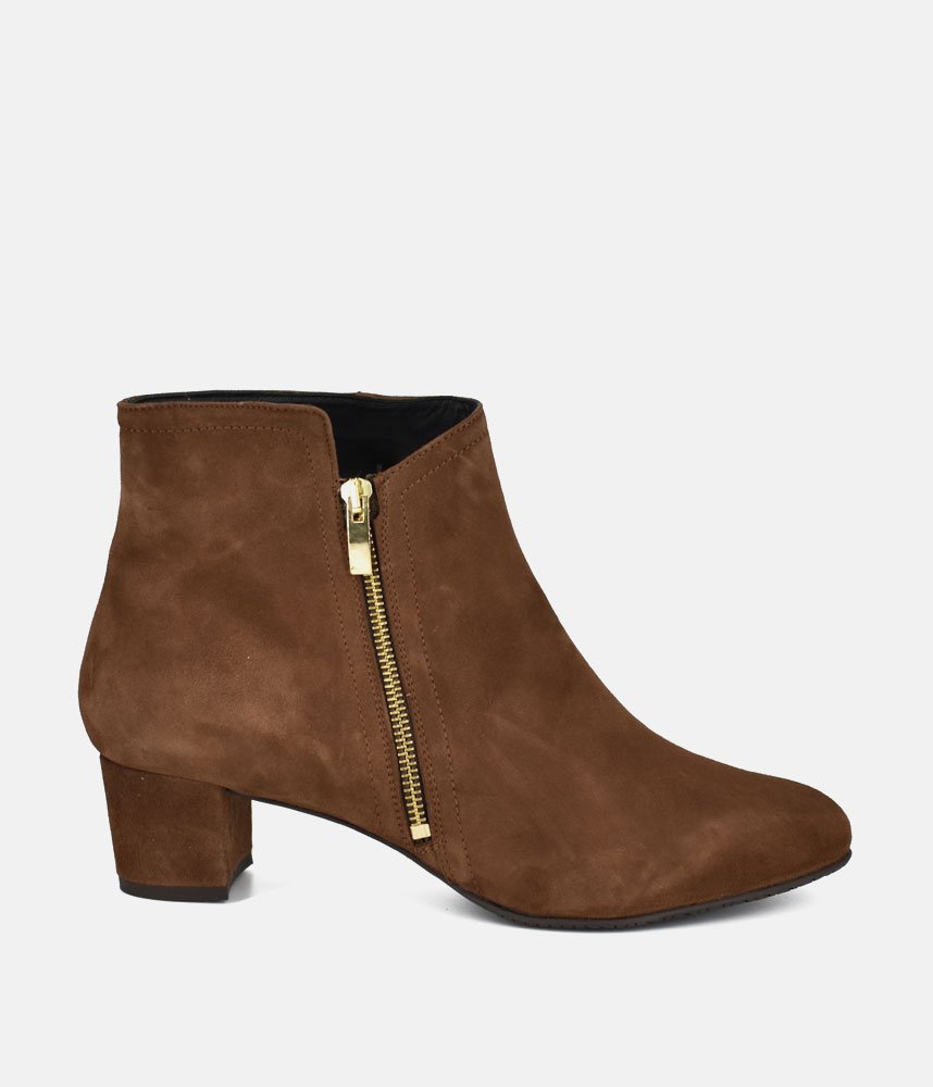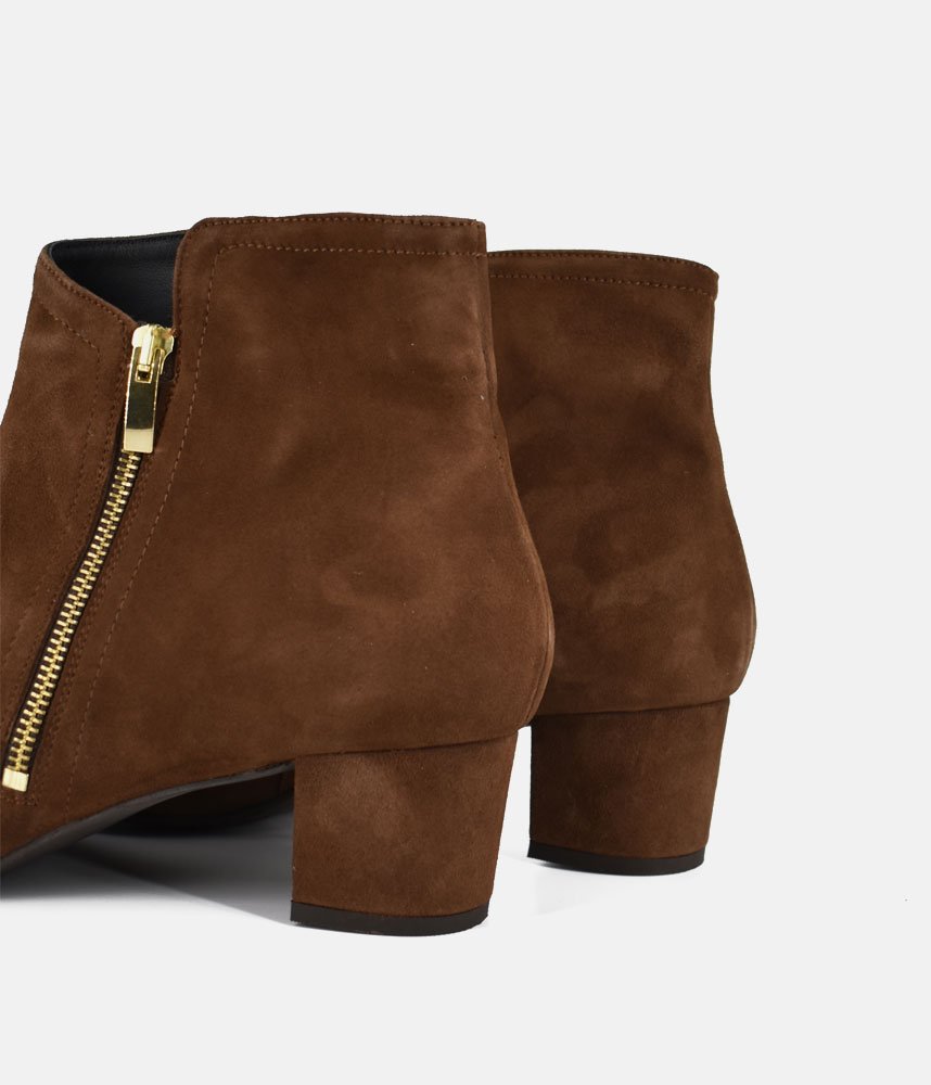 Elevate your autumn and winter looks with these stunning Cognac Brown Suede Ankle Boots with statement gold zip. Blending luxurious texture with practical design, these boots are an absolute must-have for comfort and style. These boots are the perfect finishing touch to any autumnal outfit!