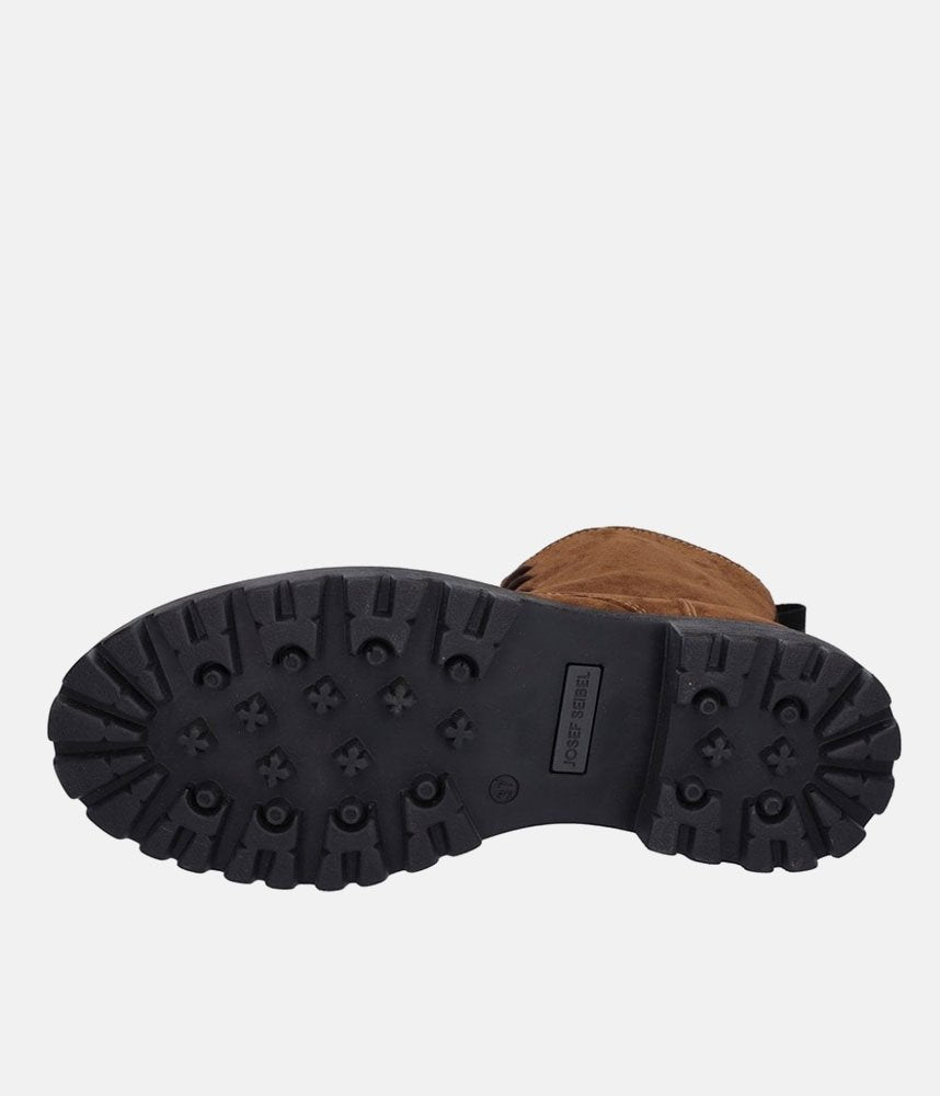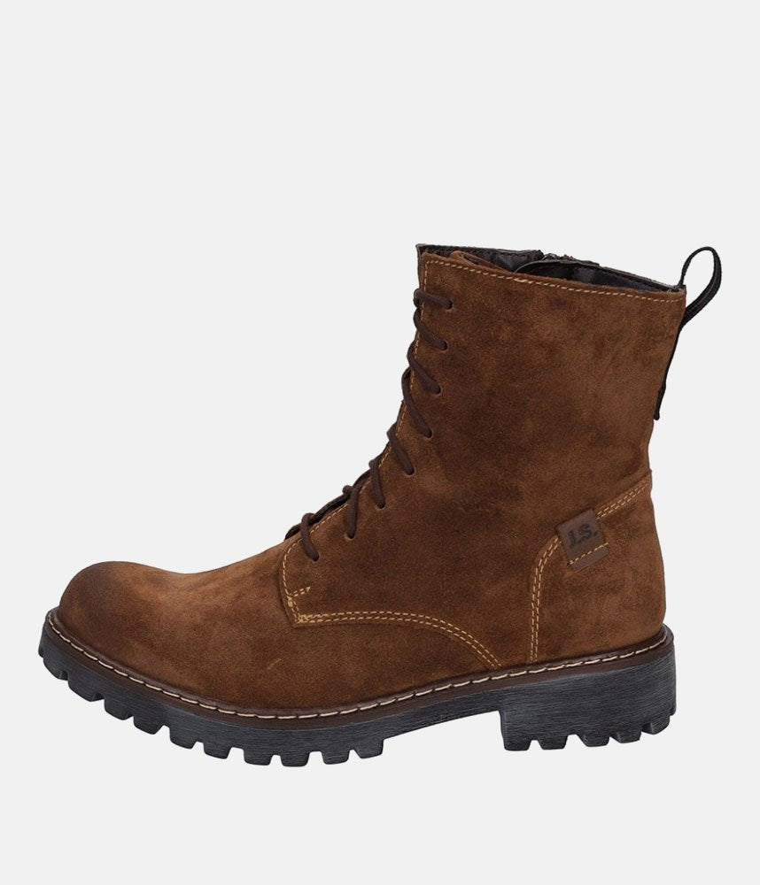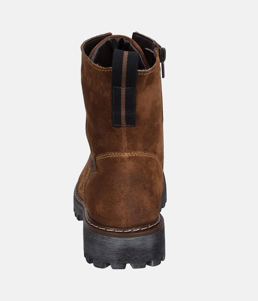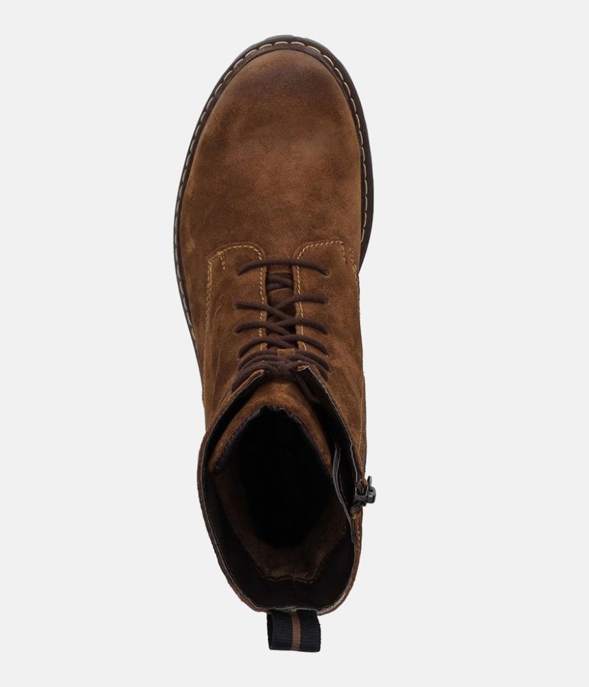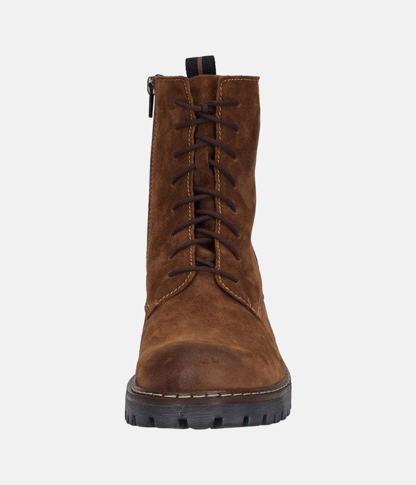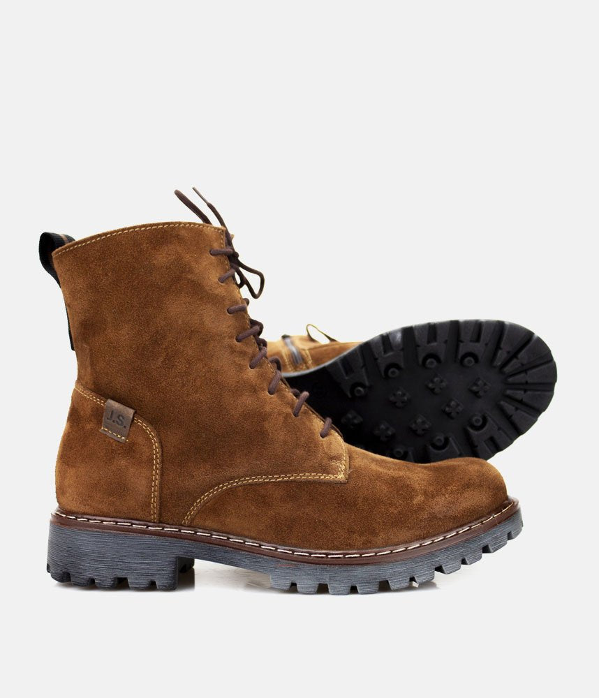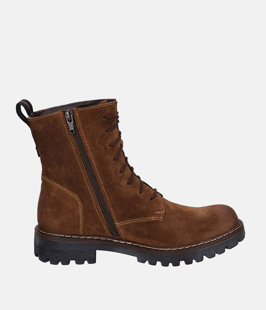 Step into the season with these fantastic cognac suede combat boots. This ankle boot also features a rear pull tab and lace up fastening for all day comfort and style this season. Blending sturdy functionality with a casual, fashionable finish, these boots are perfect for weekend adventures, outdoor events, or adding an edgy texture to your daily look. With soft velour linings, a modern block heel and a cushioned removable insole these boots will be a great addition to your wardrobe for all seasons.