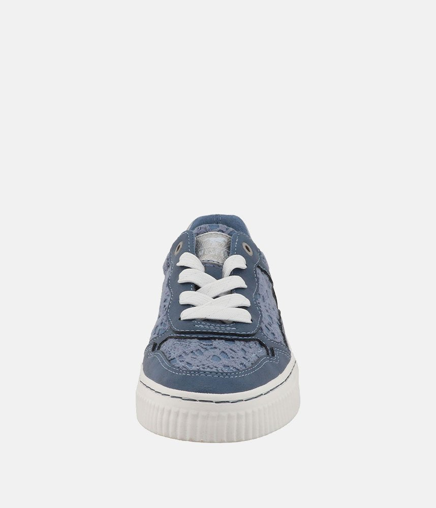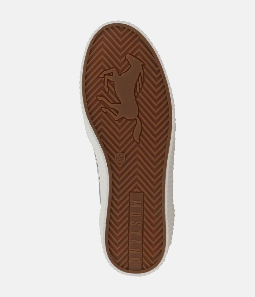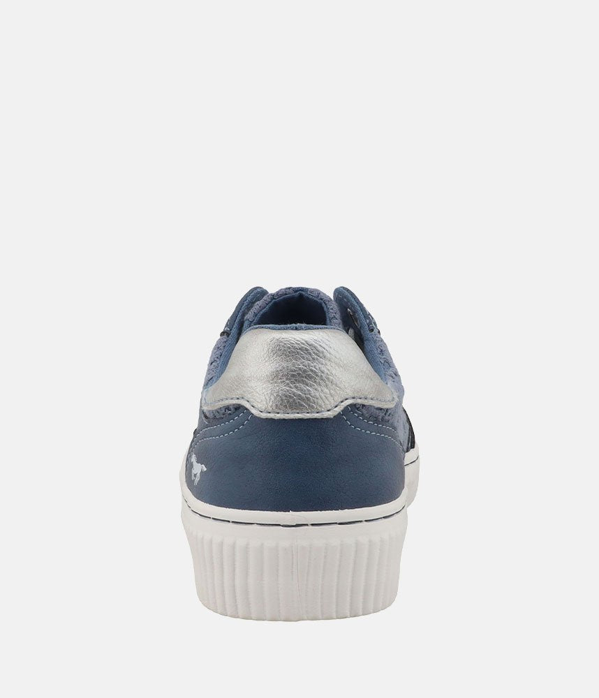 This is a Comfortable and Stylish Sporty women's trainers from Mustang, perfect for wearing with Jeans or a casual outfit. A beautiful blend of sporty utility and feminine charm, these sneakers feature a delicate lace overlay that transforms a classic silhouette into a true statement piece.