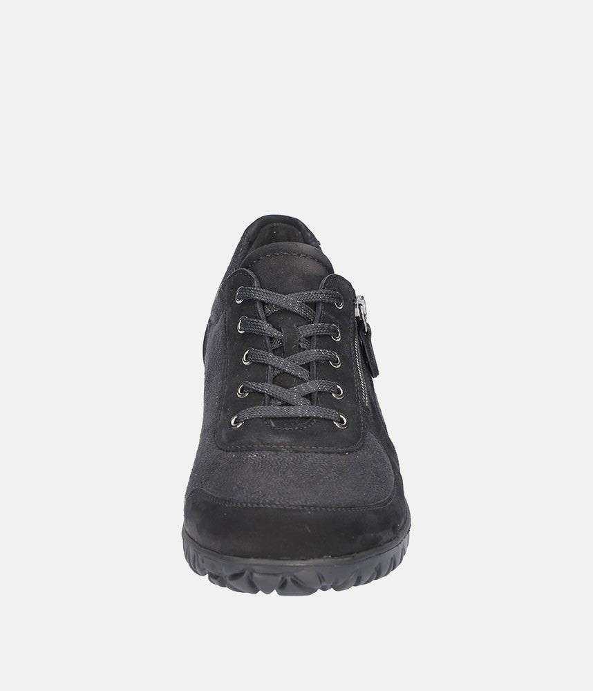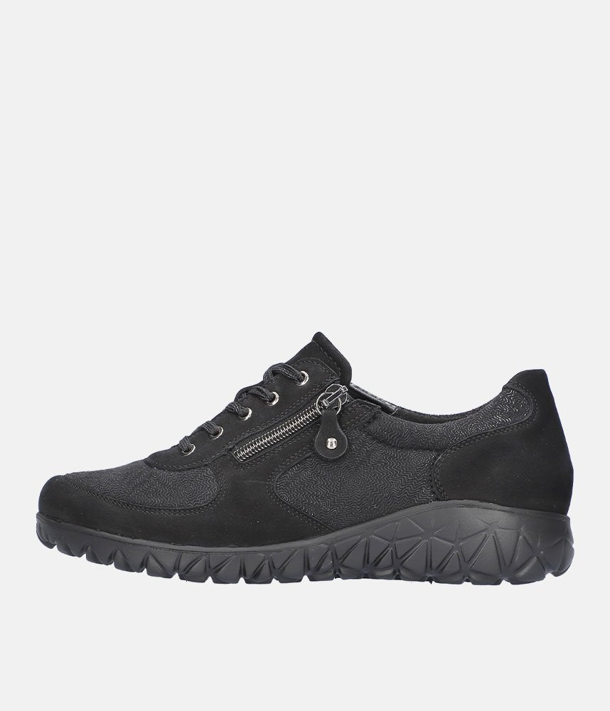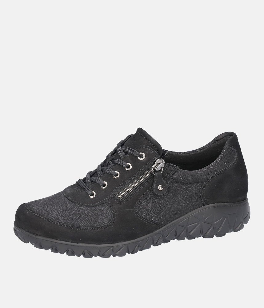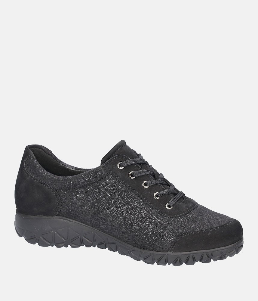 These Waldlaufer trainers are perfect if you are looking for a comfortable pair of shoes for everyday wear. This lace-up style has been manufactured from a combination of soft velour leather uppers and stretch textile. For added comfort a foam padded insole has been incorporated to cushion every step whilst also being easily removable for the insertion of orthotics for a personalised fit. The textile lined *OrthoTritt insole contours to the shape of your foot to provide support and offers pressure relief. These comfortable shoes sit on a durable, flexible rubber sole with anti-slip treading and the lace-up fastening provides a secure and adjustable fit .