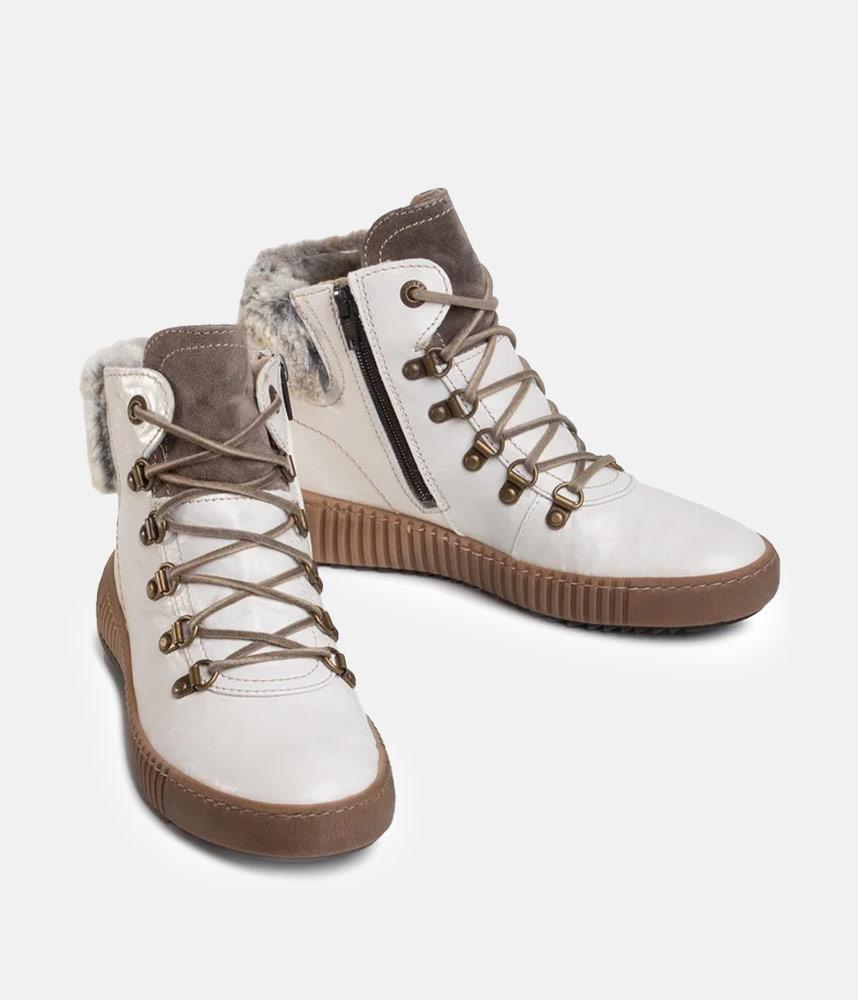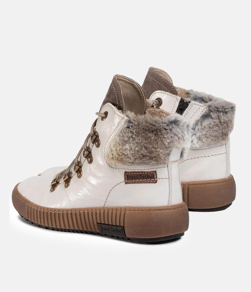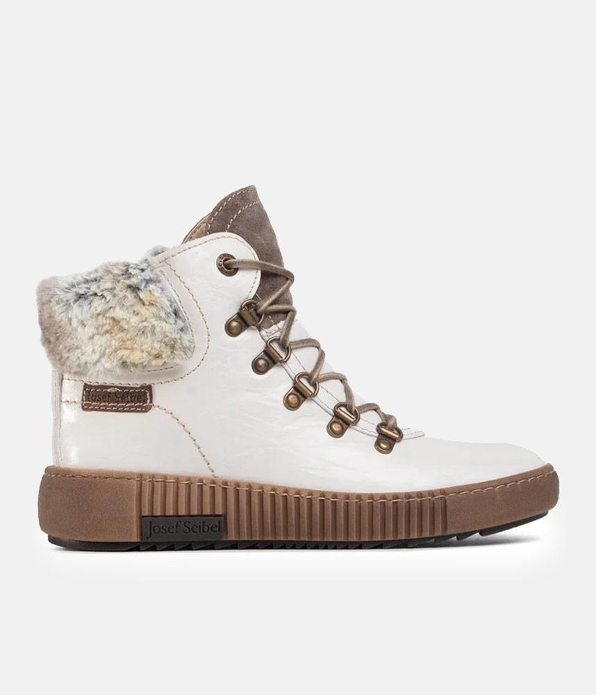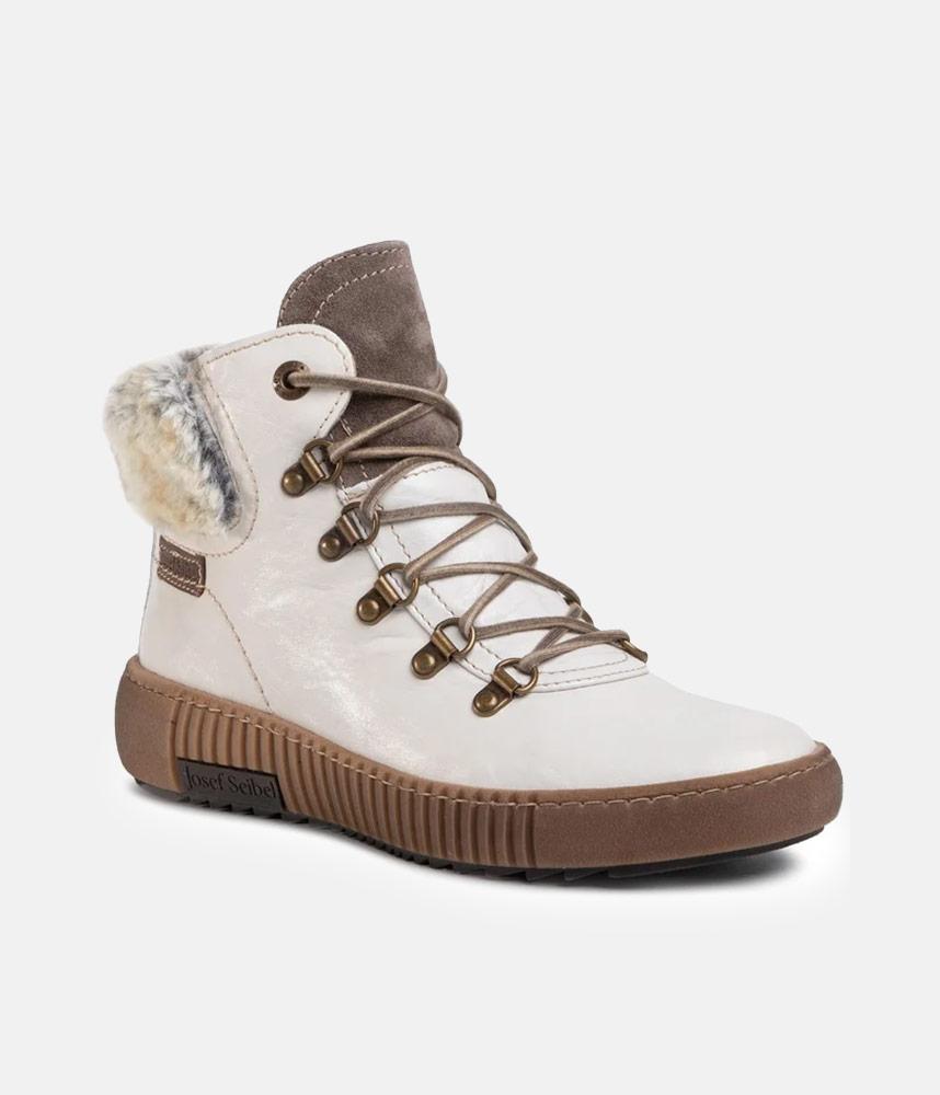 A Distinctive ankle boot offering both style and comfort from JOSEF SEIBEL. This style features an outer textural knit collar, a warm fleece lining and unique eyelets with decorative laces and a zip fastening to ensure a supportive fit. Sitting atop a chunky sole ensuring these boots are both practical and stylish.