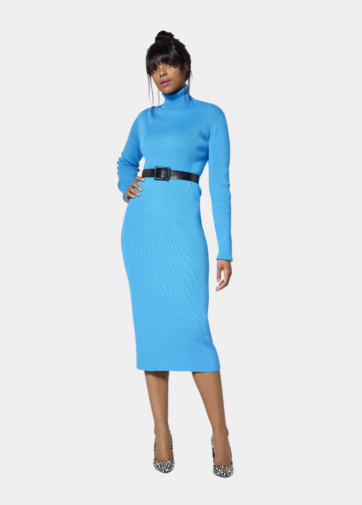 This turtleneck tall sweater dress exudes sophistication with its classic silhouette and modern appeal. Crafted in a luxe stretch fabrication with a fine rib knit, this style features full-length sleeves, a cozy turtleneck, and a knee-length hem designed for tall ladies. Pair this tall dress with a pair of heeled boots for the ultimate chic ensemble.